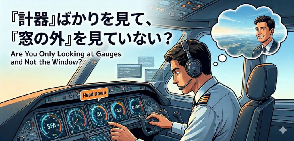 航空業界には、「ヘッドダウン」という言葉があります。パイロットがコックピット内の計器(スピードや高度の数字)に集中しすぎるあまり、窓の外の景色や周囲の状況を見失ってしまう状態を指します。
